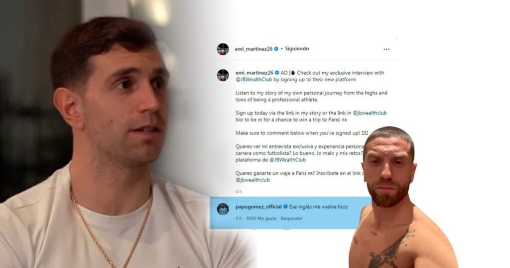 El posteo del Dibu es para promocionar JB WEALTH CLUB, una plataforma digital que ofrece información sobre fitness, inversiones, mentalidad y más, a cambio de una suscripción mensual de USD 4.99. En la publicación, Emi explica que para ver la entrevista hay que hacerse miembro de JB WEALTH CLUB, y de paso podés participar de un sorteo exclusivo.