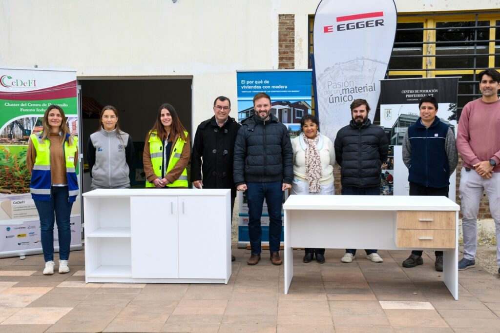 En el acto de entrega estuvo presente la directora del establecimiento educativo Silvia Alejandra Fernández, docentes, alumnos y representantes de las empresas Bourlot Maderas & Herrajes y EGGER.