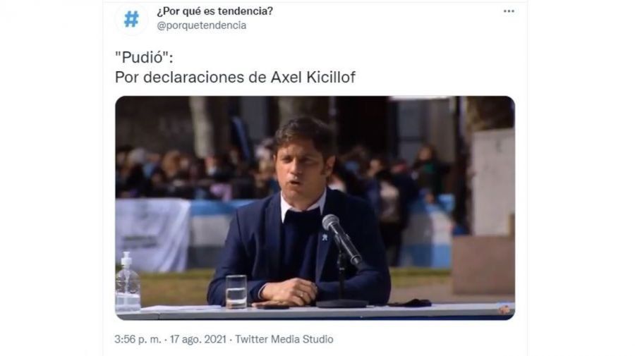 Durante su discurso, Kicillof dejó en evidencia un error gramatical mientras hacía mención a los billetes de cinco pesos: “No sé a quién se le pudió ocurrir sacar al General San Martín de los billetes que tenemos y reemplazarlo por un animalito”, lanzó el mandatario provincial mientras apuntaba contra la gestión de Mauricio Macri, y automáticamente el nombre de Kicillof y “Pudió” pasaron a ser tendencia en Twitter, donde recordaron -además de dejar memes y bromas- que la forma correcta de conjugar el verbo poder en pretérito para él, ella y usted es “pudo”.