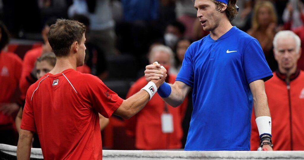 En el primer turno, el noruego Casper Ruud del Team Europa le ganó en sets corridos al estadounidense Reilly Opelka del Team World por 6-3 y 7-6(4).