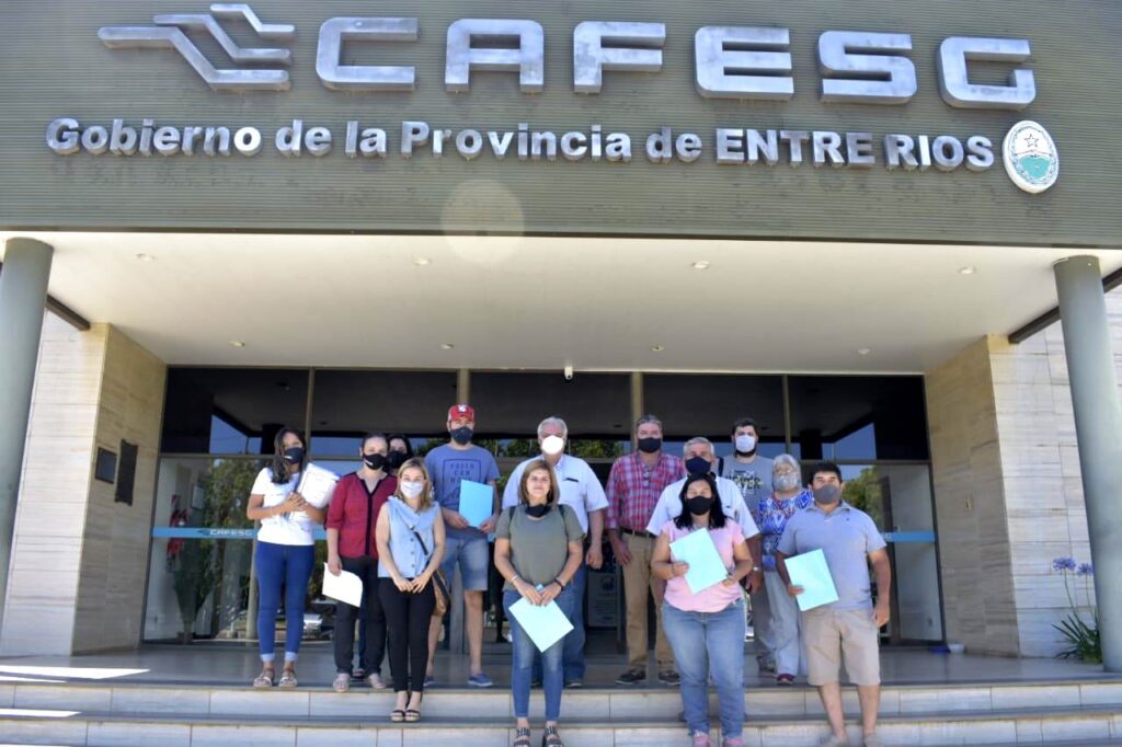 El acto de entrega de los beneficios tuvo lugar en la sede de CAFESG Concordia, y contó con la presencia de los vocales del organismo Eduardo Mozetic y Celeste Lorenz, así como de la responsable del programa, Rosana Godoy, y personal del Área de Desarrollo de la institución.