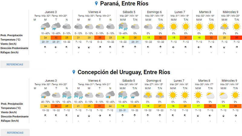 En nuestra provincia se prevén vientos débiles y regulares del este y sudeste. Parcialmente nublado a nublado. Inestable. Probabilidad de chaparrones con algunas tormentas aisladas. Alto porcentual de la humedad