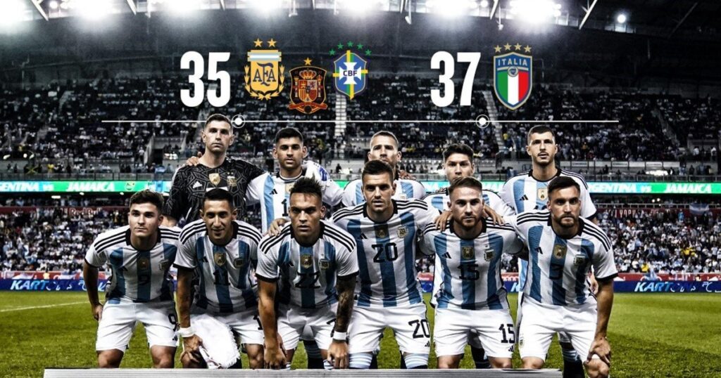 Ahora, tras golear a Honduras y Jamaica (cuatro goles de Messi en esos dos partidos, dos a cada uno), Argentina quedó a dos partidos del récord histórico de Italia, que estuvo 37 encuentros sin caer (entre 2018 y 2021). Igualó a Brasil y España, que acumularon 35 entre entre 1993 y 1996 y 2007 y 2009 respectivamente.
