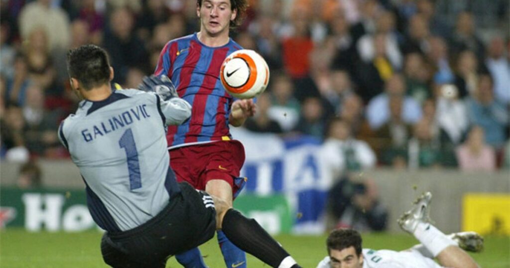El primer tanto del astro argentino en el certamen europeo ocurrió el 2 de noviembre de 2005. Fue en el 5 a 0 al Panathinaikos, de Grecia, en el Camp Nou. Leo marcó el tercero ante el arquero Galinovic, con un sombrerito previo. Además, hubo un hat-trick de Eto’o y un tanto del neerlandés Van Bommel.