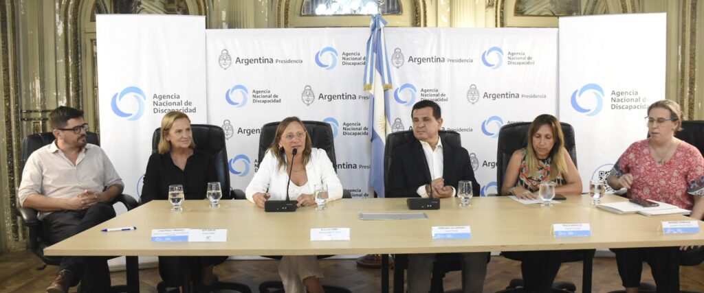 La ministra de Desarrollo Social, Marisa Paira, junto a la directora del Instituto Provincial de Discapacidad (Iprodi), Inés Artusi, acompañó el acto de firma encabezado por el director de la Andis, Fernando Galarraga, en la sede central de la agencia en la Ciudad Autónoma de Buenos Aires.