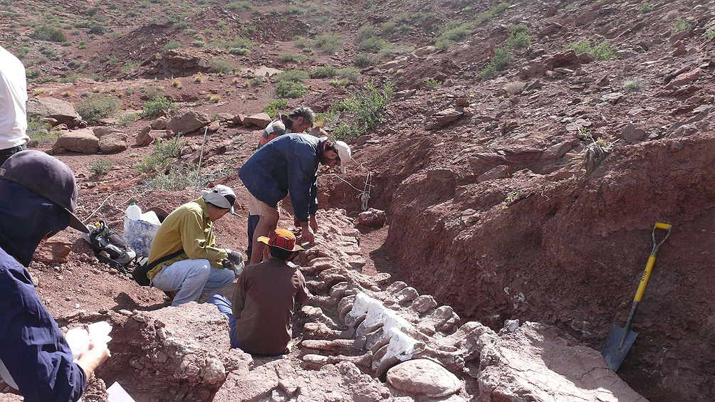 “Si bien se encontró hace un par de años, es tan grande el ejemplar que nos está llevando mucho tiempo extraerlo, lleva mucha logística pero justamente con los pocos materiales que se han recuperado corresponde sin dudas a uno de los dinosaurios más grandes, aunque todavía no podemos decir a ciencia cierta si es el más grande”, dijo a Télam Alberto Garrido, geólogo de la Universidad Nacional de Comahue y director del museo de Ciencias Naturales “Juan Olsacher”, quien trabaja en la excavación.