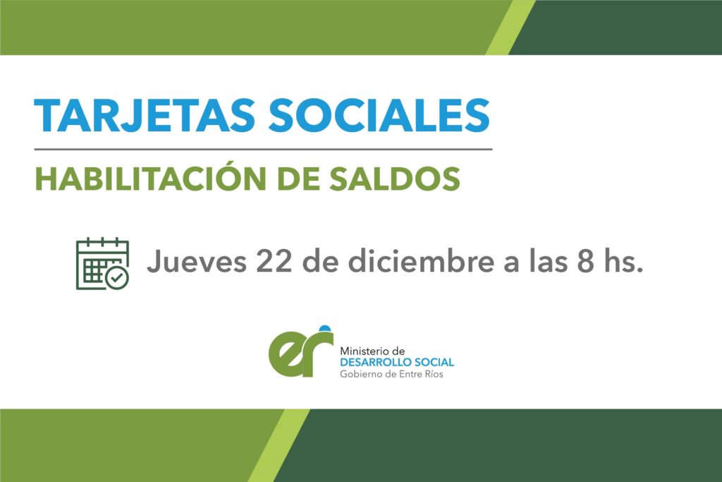 La Subsecretaría de Políticas Alimentarias del Ministerio de Desarrollo Social informó que este jueves 22 de diciembre se acreditarán los saldos de la tarjeta social, a partir de las 8.