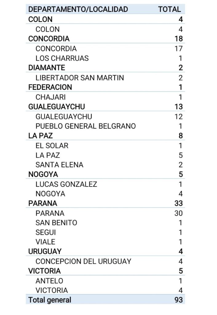 El área de Vigilancia Epidemiológica del Ministerio de Salud, confirmó que en Entre Ríos este lunes se registraron 93 nuevos casos de coronavirus.