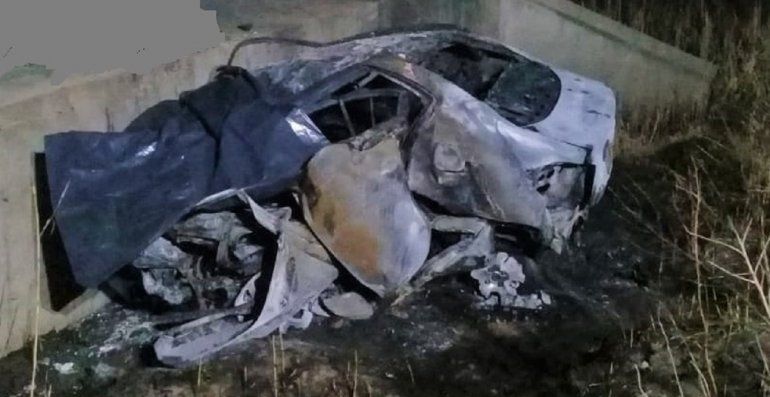 Según indicó el parte policial en el lugar del siniestro “se pudo apreciar un automóvil con orientación de este a oeste situado en el tramo no habilitado de la autovía el cual, por razones que se tratan de establecer, habría colisionado con la base de cemento de un aliviador pluvial, incendiándose completamente”.