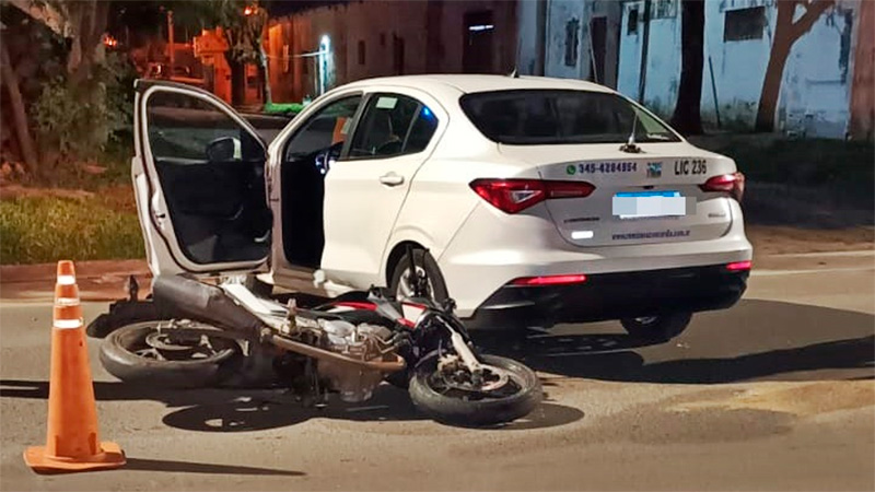 En ese lugar, por causas que se tratan de establecer, impactaron un Fiat Crono que presta servicios como remis y que se movilizaba en sentido norte – sur por Alvear, y el conductor de una motocicleta Honda Twister de 250 cc que circulaba por Illia de este a oeste.