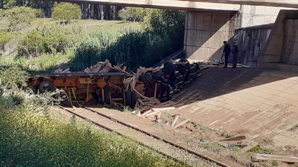 Allí, un camión Ford 1722 con acoplado, conducido por un joven de 23 años de edad, con domicilio en la localidad de Mocoretá, que se conducía de norte a sur, cargado con tablas de madera, por razones que se tratan de establecer chocó contra el guardarrail central y cayó entre los dos puentes, sobre las vías de ferrocarril.