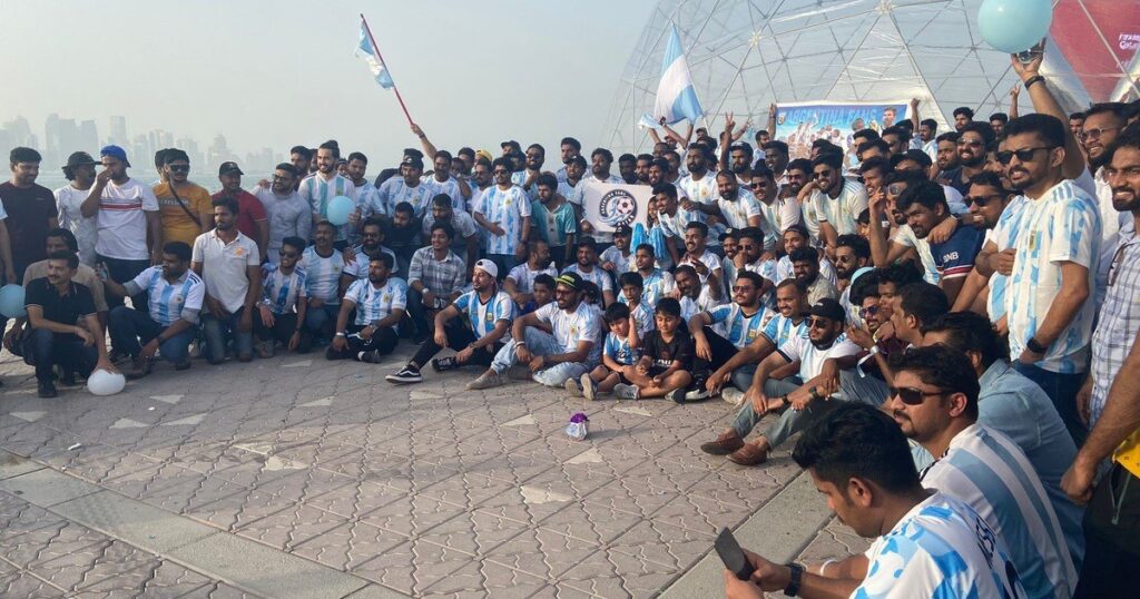La convocatoria se hizo en un par de días y la respuesta fue total. Se sabe que Messi traspasa idiomas y países, por lo que los hinchas no tardaron en responder. Así, se juntaron en Corniche, un paseo marítimo en la bahía de Doha, y el punto de encuentro fue el Count Down Clock, el reloj que avisa cuando falta para el Mundial.
