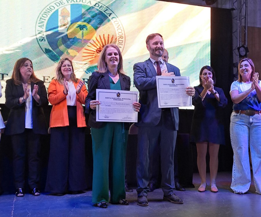 La Junta Electoral Municipal del Departamento Concordia entregó los diplomas y proclamó intendente de Concordia a Francisco Azcué y viceintendente a Magdalena Reta de Urquiza, para el período 2023-2027.