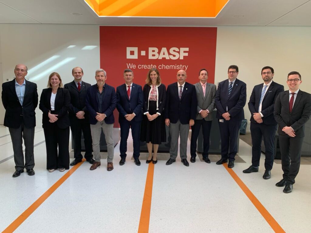 En ese marco, la comitiva oficial que integra Frigerio recorrió las instalaciones de la firma líder en la innovación de los procesos productivos y cuidado del ambiente. La fábrica se fijó como objetivo generar cero emisiones netas de gases de efecto invernadero para 2050. Fueron recibidos por el director de Política Comercial e Industrial, Redes Internacionales de la Sociedad Europea BASF SE, Jan Von Herff.