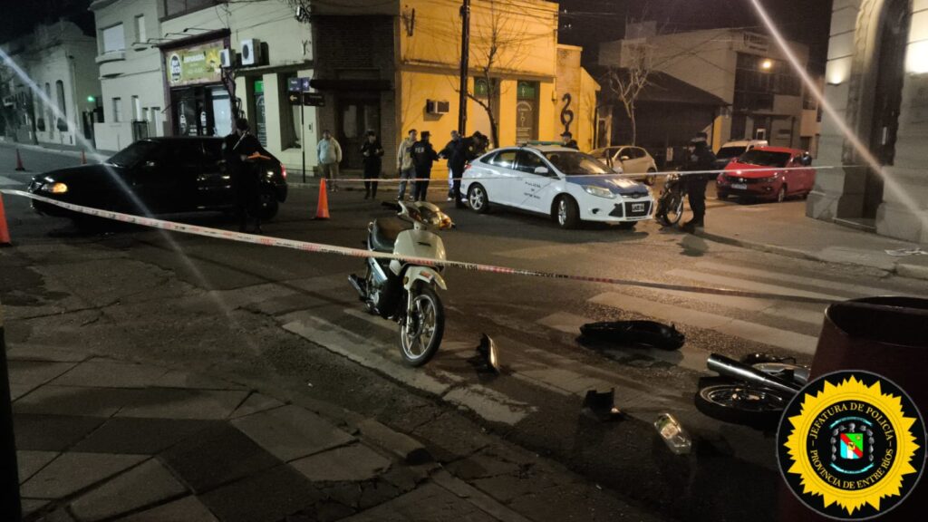 Personal de Comando Radioeléctrico tomó intervención en horas de la madrugada, por un siniestro vial entre un vehiculo VW Gol conducido por un masculino y una moto Corven 110cc conducido por un masculino de 19 años de edad y acompañado por una femenina de 17 años de edad, en calles Estrada y Urquiza.