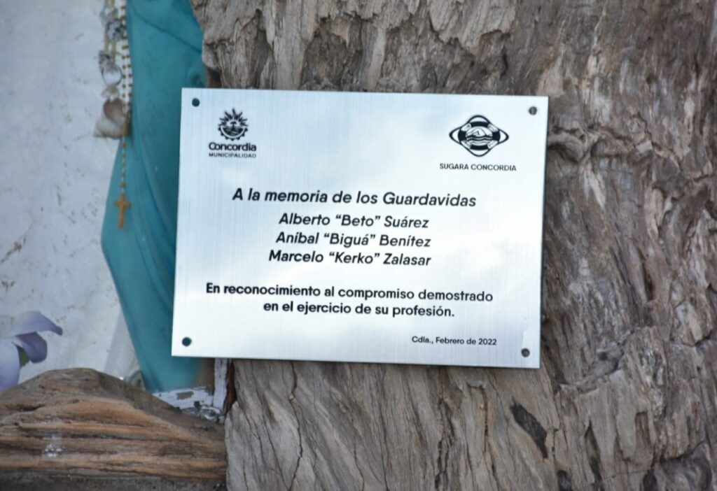 “Dios le dio al Beto, al Negro y al Kerko, la tarea de formar una familia, de ser buenos compañeros y buenas personas. Y también les dio la tarea de salvaguardar vidas. Los que compartimos horas de trabajo con ellos, quienes los conocimos, hoy debemos decirles a los tres, y a sus familiares, que ellos cumplieron con su misión: tarea cumplida”, expresó emocionado Franco Álvarez, delegado de Sugara Concordia tras el descubrimiento de la placa.