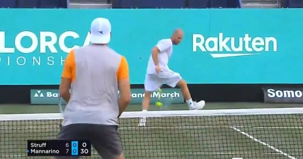 El francés Adrian Mannarino, número 42 del mundo, ganó un puntazo espectacular frente al alemán Jan-Lennard Struff en el Abierto de Mallorca. El germano le tiró un globo y el zurdo galo corrió por la pelota y utilizó un recurso patentado por el gran Guillermo Vilas, la Gran Willy, el gesto técnico de pegarle entre las piernas.
