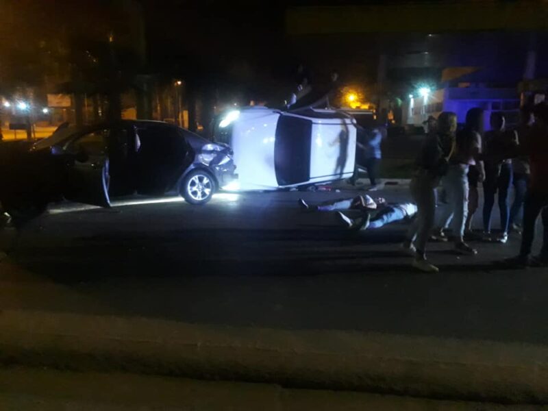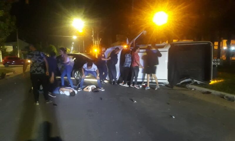 El accidente ocurrió en la madrugada de este domingo cuando una camioneta impacto contra un auto y terminó volcando, dejando varios heridos. Según testimonios, de la camioneta se logró visualizar vasos y bebidas alcohólicas.