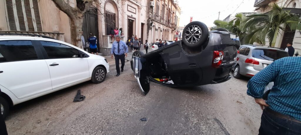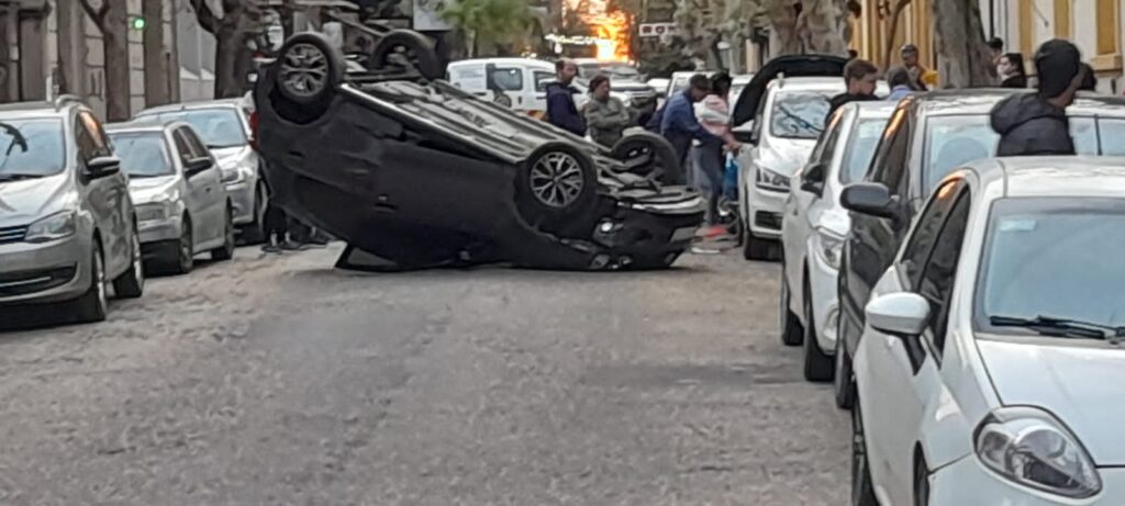 En horas de la tarde de este sábado alrededor de las 18hs se produjo un vuelco en calle 1ro de Mayo entre La Rioja y San Juan. El mismo tuvo como protagonista a un automóvil Toyota Ethios que circulaba por calle 1 de mayo y la mujer que lo conducía pierde el control del auto y da un vuelco.