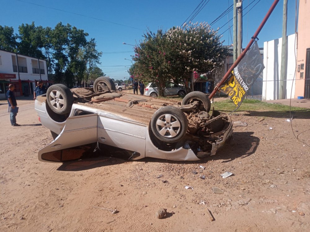 En la mañana de este viernes la Policía de Comisaría Cuarta toma conocimiento de que un auto marca VOLKSWAGEN-Bora de color gris, que circulaba por calle Diamante en sentido S/N perdió la estabilidad produciendo un vuelco en la calle mencionada entre Dr. Alda y Córdoba , quedando el mismo con las cuatro ruedas hacia arriba. El rodado era conducido por un joven de 21 años y lo acompañaban una mujer de 34 y un menor de 13 años. Luego comunican desde el nosocomio que las tres personas estarían sin riesgo de vida aunque todavía se aguardan estudios médicos realizados.-