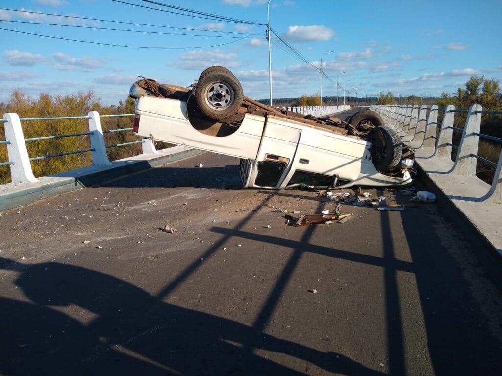 Una camioneta sufrió la rotura de la dirección mientras circulaba por un puente ocasionando la pérdida de control del vehículo. El impacto con la baranda provocó chocó el vuelvo sobre la cinta asfáltica.