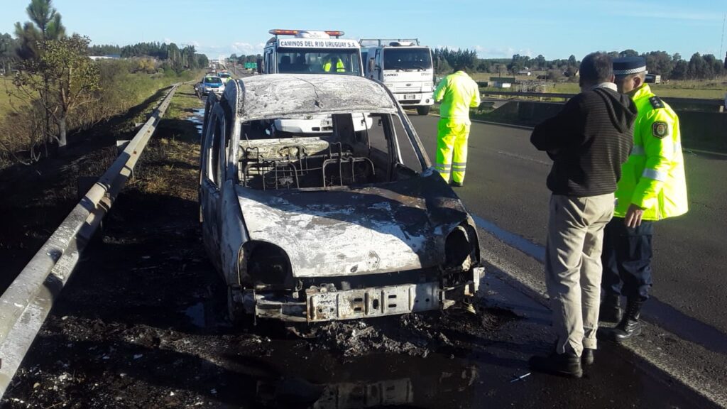 Quién estaba a cargo del volante se dio cuenta de algunos corto circuitos en la Kangoo y tomó la decisión de estacionar en la banquina, al salir del vehículo éste comienza a incendiarse en su totalidad.