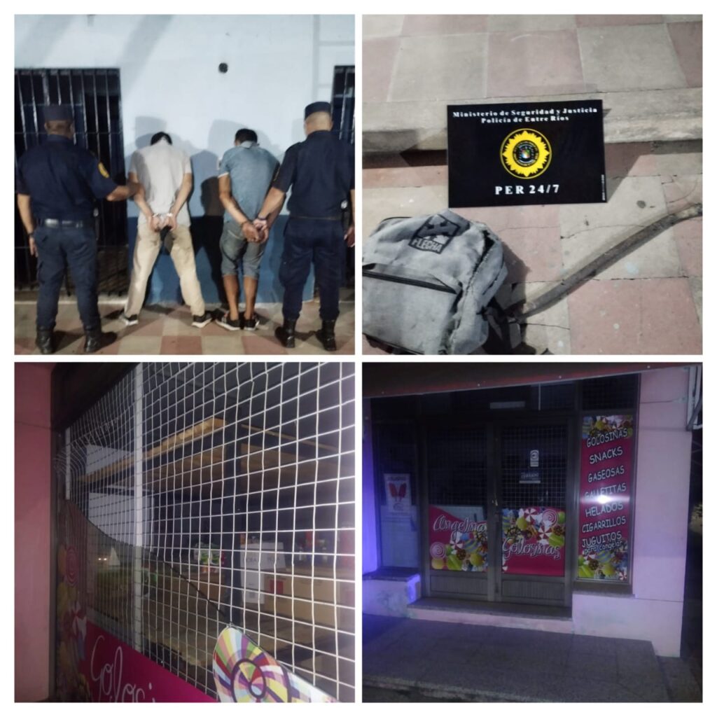Los mismos, quienes momentos previos habían roto gran parte de la ventana lateral y doblar las rejas internas de un comercio ubicado en calle Las Heras y H. Primo con el fin de robar.