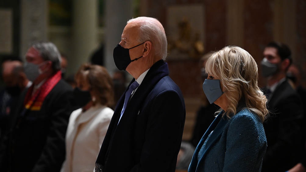 En un acto de fuerte simbolismo, Biden, el segundo presidente católico de la historia del país, asistió esta mañana a una misa en la catedral de San Mateo de Washington -donde se realizó el funeral del primer mandatario católico, John F. Kennedy- acompañado por líderes demócratas y republicanos del Congreso, en una muestra de unidad a horas del inicio de su mandato.