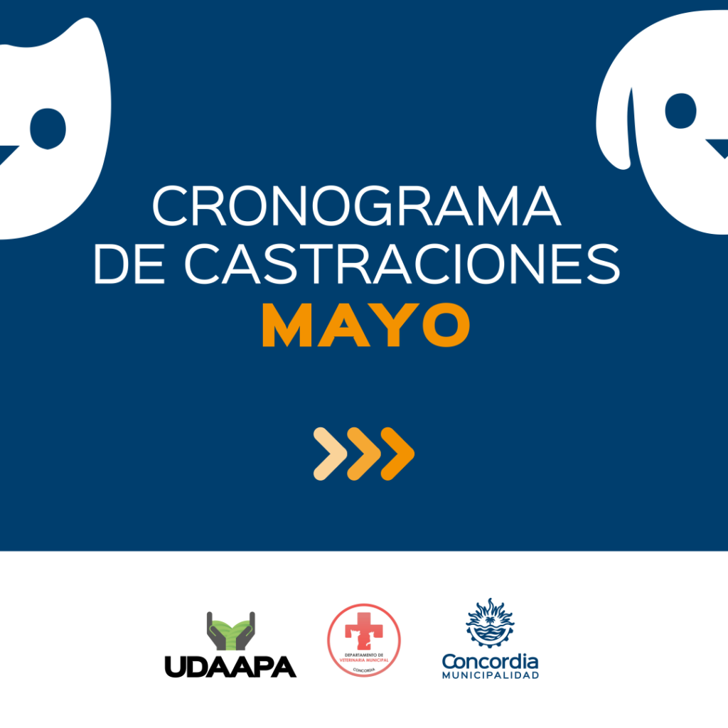 Durante el mes de mayo, la Veterinaria Municipal dependiente de la Unidad de Desarrollo Ambiental y Administración del Parque Abasto (UDAAPA), llevará a cabo jornadas de castraciones gratuitas en los distintos barrios de Concordia en el marco de la gestión que impulsa el intendente, Enrique Cresto.