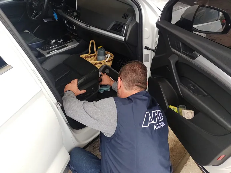 De acuerdo a la revisión, se encontraron 29.600 dólares escondidos en el vehículo, labrándose las actuaciones de rigor en el artículo 979 del Codigo Aduanero.