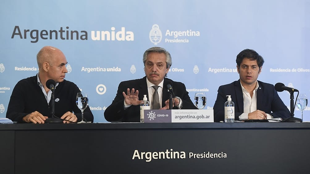 El Presidente brindó una conferencia de prensa desde la Residencia de Olivos, acompañado por el gobernador bonaerense, Axel Kicillof, y el jefe de Gobierno porteño, Horacio Rodríguez Larreta.