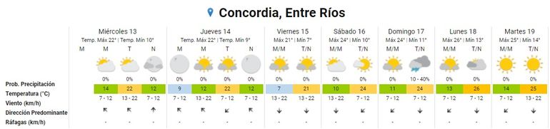 Hacia el sábado y domingo se espera un repunte leve de las temperaturas. Las mínimas se elevarán hasta los 12 y 13 grados. En tanto, las tardes serán más calurosas, con máximas de 23, 24 y 25 grados.