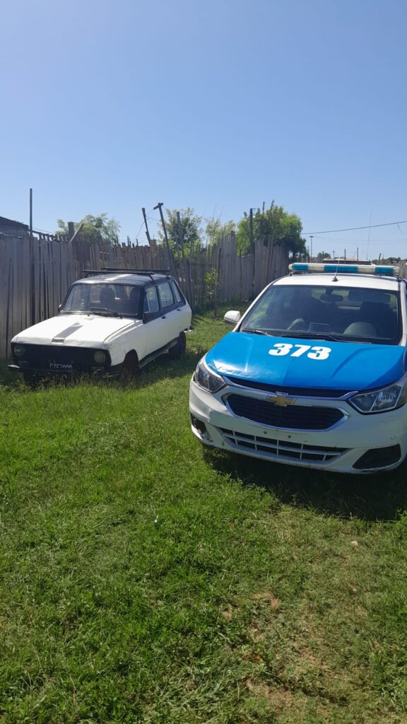 Ante esta situación, el personal policial desplegó rápidamente un operativo de búsqueda, logrando localizar el vehículo sustraído y aprehender a uno de los presuntos autores del hecho. Al momento de su hallazgo, el Renault 6 presentaba la faltante de su rueda delantera izquierda.