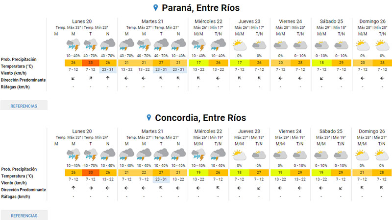 El martes la inestabilidad, con lluvias y tormentas, alcanzaría a gran parte del territorio entrerriano y se anuncia que podrían persistir hasta el miércoles, con mejoramientos temporarios. Recién hacia la noche de dicha jornada o el jueves las condiciones mejorarían.