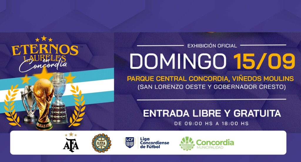 La muestra “Eternos Laureles” es iniciativa impulsada por la Municipalidad de Concordia y la Liga Concordiense de Fútbol donde el público en general podrá acercarse a conocer las copas ganadas por la Selección Argentina.