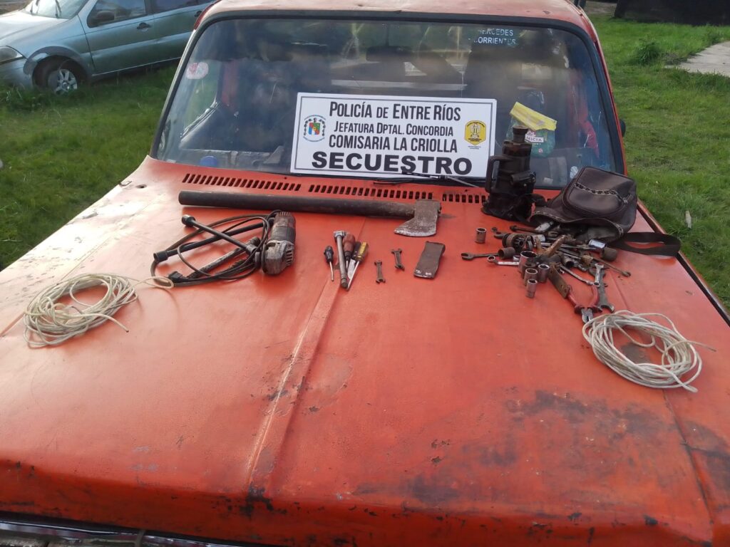 Mediante un llamado telefónico a la Comisaría de La Criolla surgido en la tarde de hoy, donde se daba a conocer sobre la actitud sospechosa de personas que se conducían en una Pick-Up de color anaranjada en las cercanías del paso a nivel de Vías Férreas de la Localidad de San Bonifacio, fue que rápidamente los Efectivos se constituyeron en el lugar; encontrando en marcha al vehículo descripto. Una vez interceptada y parada la marcha del rodado, se procedió a verificar quienes se conducían en él, encontrándose además en la caja del vehículo (12) bolsas de plastillera conteniendo tornillos y planchuelas (las que se usan para fijar los durmientes de la vía) estimándose un peso de unos 400kg. aprox. Se comunica a la Fiscalía en turno que dispone el Secuestro de los elementos sustraídos y de las herramientas utilizadas, como así también; la APREHENSIÓN de dos masculinos de 38 y 58 años quienes quedaron alojados en la Alcaidía Policial.-