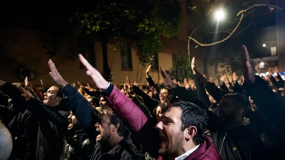 Dos hechos recientes han sido los más llamativos. Uno fue la manifestación del 7 de enero pasado en Roma, en memoria de tres jóvenes neofascistas del Frente de la Juventud asesinados en 1978 por un grupo armado de izquierda, en la calle Acca Larentia del barrio romano del Tuscolano. El encuentro se hizo frente a la exsede del partido Movimento Sociale Italiano, fundado por los fascistas en 1947, y donde murieron los jóvenes. Al menos 200 personas vestidas de negro, el color de los fascistas, levantaron la mano derecha haciendo el saludo romano o saludo fascista, cuando uno de los organizadores gritaba repitiendo varias veces: “Por todos los camaradas caídos” y la multitud respondía “Presente”.