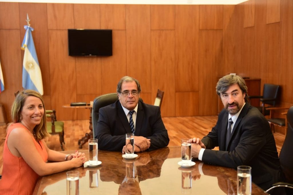 En el marco de un encuentro que se desarrolló este lunes, la vicegobernadora Laura Stratta, el presidente de la Cámara de Diputados, Ángel Giano; y el presidente del STJ, Martín Carbonell, dialogaron sobre Ley Micaela y Juicio por Jurados.