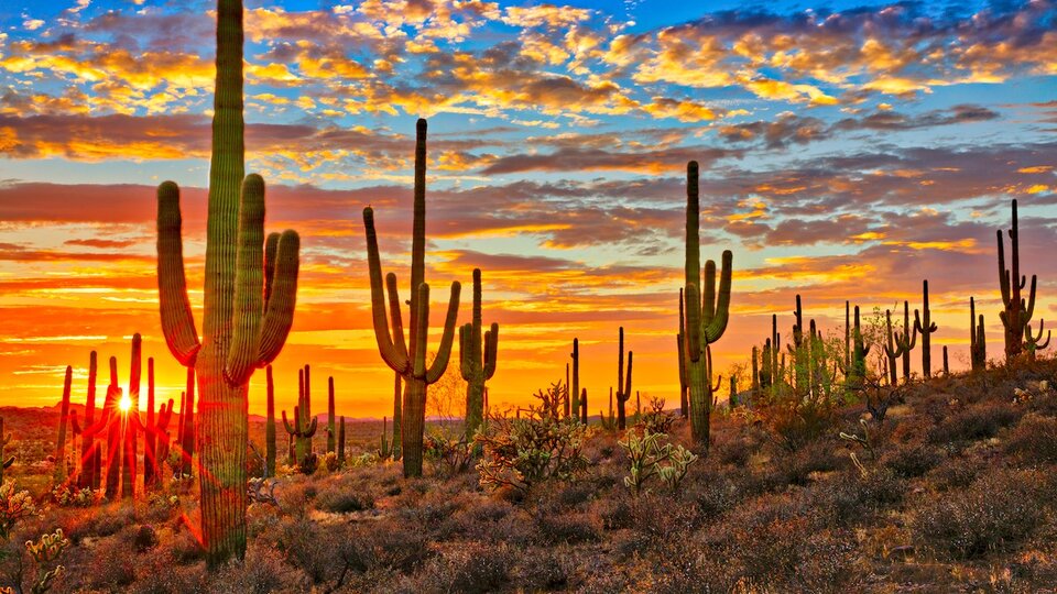El Desierto de Sonora posee una biodiversidad única en el mundo, con una vegetación de 500 especies de plantas, predominando el cactus Saguaro, una especie que alcanza hasta los 15 metros de altura.