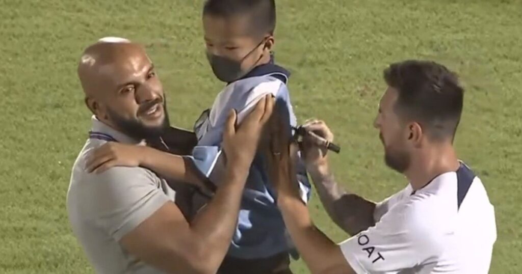 El crack argentino fue uno de los más ovacionados por el público y sobre el final de la práctica le firmó una camiseta del seleccionado argentino a un niño japonés que se metió en el campo de juego para tener un recuerdo suyo.