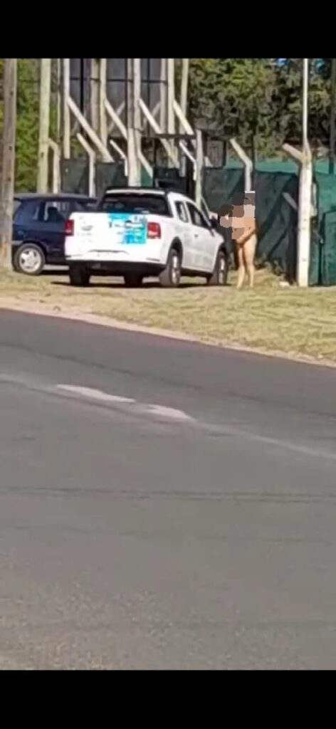 En la tarde del martes en avenida Eva Perón y Sara Neira una mujer totalmente desnuda rompió los vidrios de una camioneta que se encontraba estacionada en el lugar.