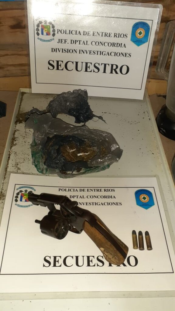 En dos de los allanamientos se secuestró droga: casi dos kilos de marihuana y también dosis de cocaína. Quedó detenido una persona mayor de edad por la tenencia de la droga y el arma de fuego
