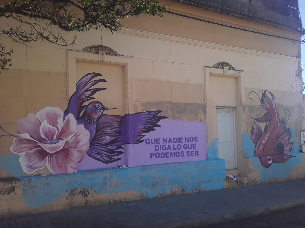 El mural se encuentra en calle Carriego al 300, y representa el mensaje que la artista plástica convocada interpretó y plasmó a partir de la consigna «Que nadie nos diga lo que podemos ser», misma consigna y mensaje que se está utilizando en los murales que se están pintando en diferentes ciudades de la provincia, en este mes de marzo.