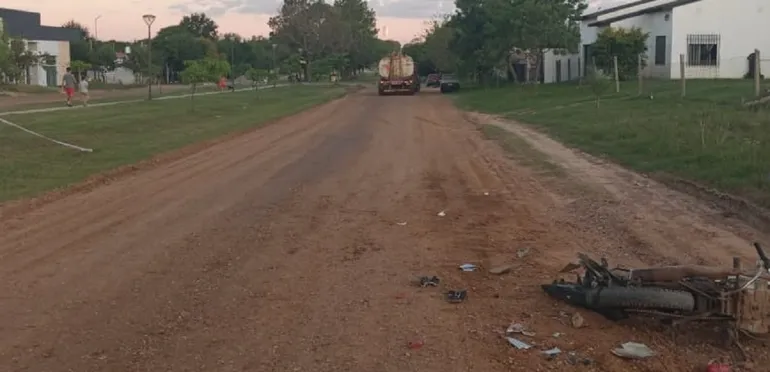 La moto dobló hacia la avenida y habría colisionado en la parte trasera de un Mercedes Benz 1114 con semirremolque (tanque de agua), de servicio tercerizado por el Municipio de Chajarí. El camión era guiado por un hombre de 64 años.