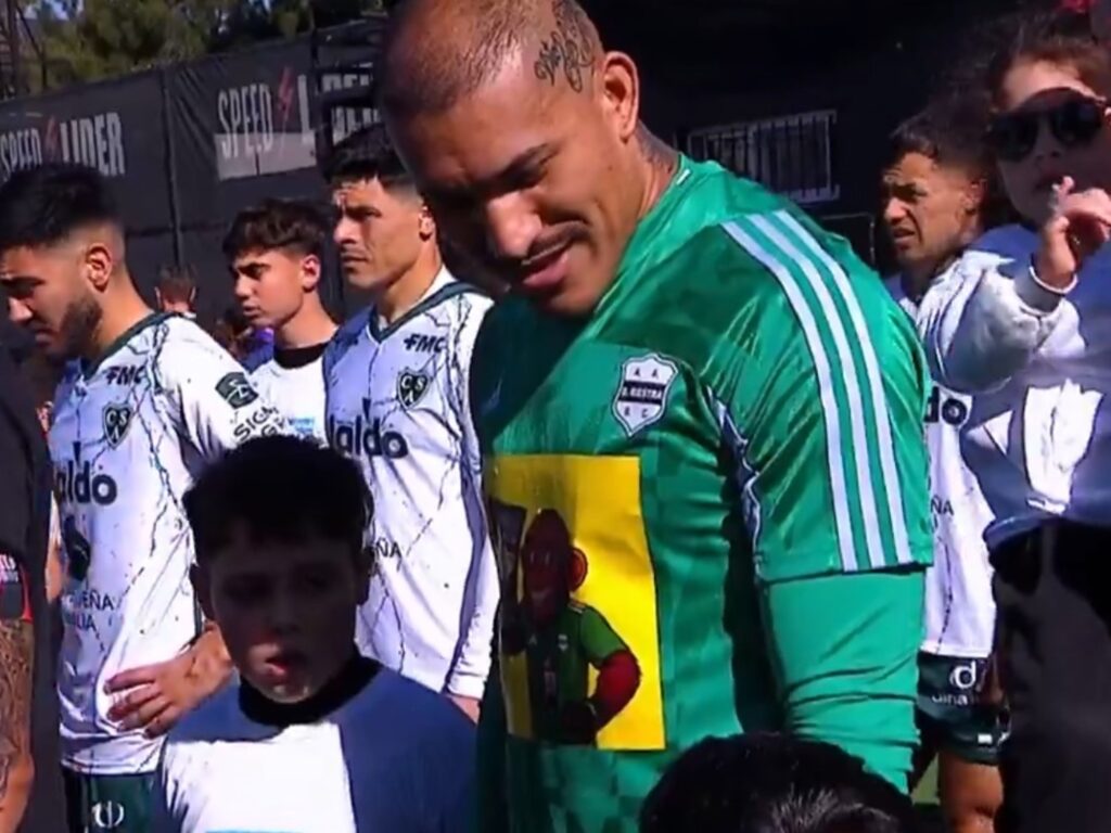 Durante la salida de los equipos al verde césped del estadio Guillermo Laza, las cámaras se fueron con Ignacio Arce. Fiel a su estilo, el arquero de Riestra entró al partido con una sorprendente camiseta, la cual también vistió durante el desarrollo del encuentro de esta tarde entre el Malevo y Sarmiento de Junín.