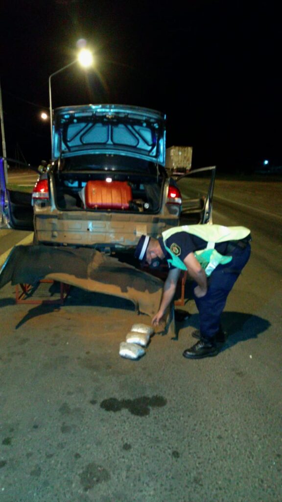 En las primeras horas del día de hoy y en el marco del desarrollo del Operativo VERANO SEGURO 2.020-2.021 personal de la Dirección de Prevención y Seguridad Vial de la Policía de la provincia de Entre Ríos destacados en el Puesto Caminero Paso Cerrito, departamento Federación, detiene la marcha de un automóvil marca Chevrolet modelo Corsa en el cual ingresaban a la provincia de Entre Ríos dos hombres mayores de edad domiciliados en la provincia de Misiones. Una vez efectuado el contralor de rigor y avanzado el mismo con la intervención del can narcodetector Gringa y su guía natural la misma adoptó inconfundibles conductas propias ante la presencia de estupefacientes. Ante esto, lograda la colaboración invaluable de la División Toxicología de la jefatura Departamental Federación y con pleno conocimiento del juzgado Federal de Concepción del Uruguay se lleva adelante requisa vehícular y personal de urgencia hallando en compartimientos irregulares del rodado la cantidad de tres envoltorios los cuales al test de campo arrojan positivo para PASTA BASE DE COCAÍNA con un peso total de cinco kilogramos sesenta gramos, sustancia que es secuestrada al igual que el automóvil, equipos de teléfonos celular quedando inmediatamente detenidos e incomunicados los autores.