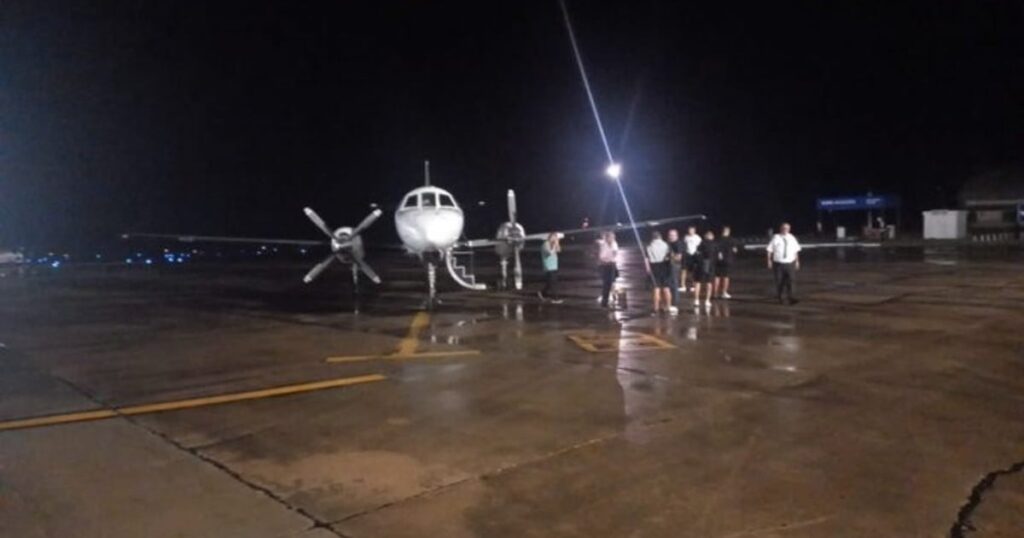 ¿El por qué de la demora? El avión llegó a Santa Fe para reabastecerse de combustible, tal como estaba programado. Sin embargo, al momento de comenzar con la segunda fase del viaje, ya en el aire, recibió la comunicación de que el aeropuerto correntino se había cerrado por las inclemencias del tiempo. Así las cosas, hubo que reconsiderar el recorrido y hacer sorpresiva escala en Paraná, Entre Ríos, a la espera de novedades. Cuando tuvieron el OK, despegaron en un tramo que -según informa La Nueva.com- tuvo más turbulencias de las deseadas…