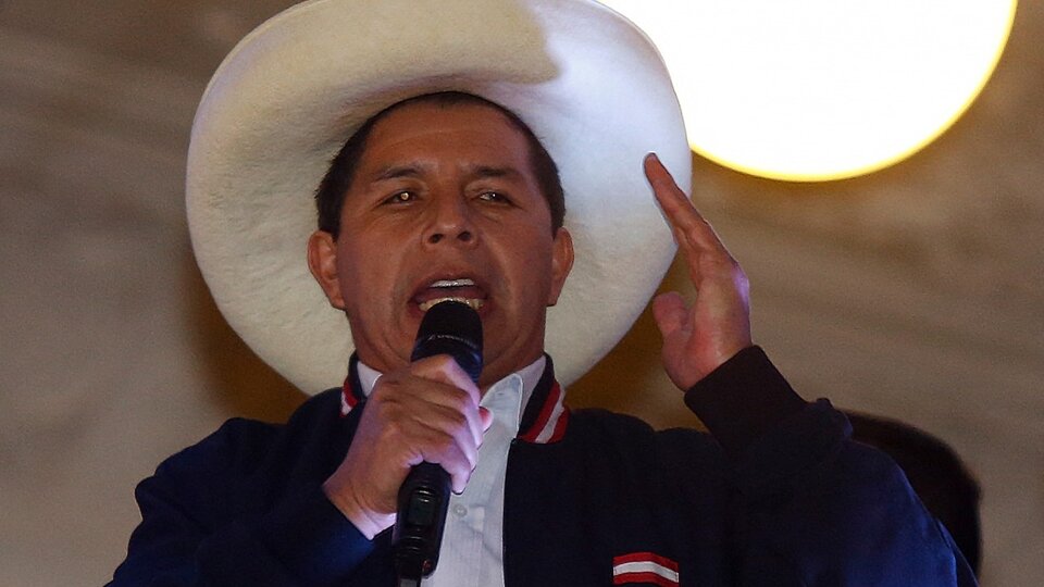 Castillo habló a sus seguidores desde un balcón que da a la céntrica plaza San Martín, ubicada a pocas calles de Palacio de Gobierno y tradicional escenario de manifestaciones políticas y protestas sociales. Cuando apareció en el balcón se soltaron globos rojos y blancos, los colores patrios, se lanzaron fuegos artificiales y resonaron los aplausos y las consignas de apoyo al futuro gobierno de izquierda. Fue una noche de júbilo popular. El maestro y campesino que viene de una de las zonas andinas más pobres del país y que en unos días asumirá la presidencia del Perú, recordó su participación en las luchas gremiales en esa misma plaza, que esta vez lo recibía como presidente electo. “Yo aprendí a luchar en esta plaza del pueblo junto con ustedes, con los obreros y campesinos. El recuerdo más grato es la lucha con los maestros de todo el país. Gracias a la lucha tenemos ahora un proyecto político, una alternativa para el país”, comenzó su discurso, que como ya es costumbre fue breve. Duró diez minutos.