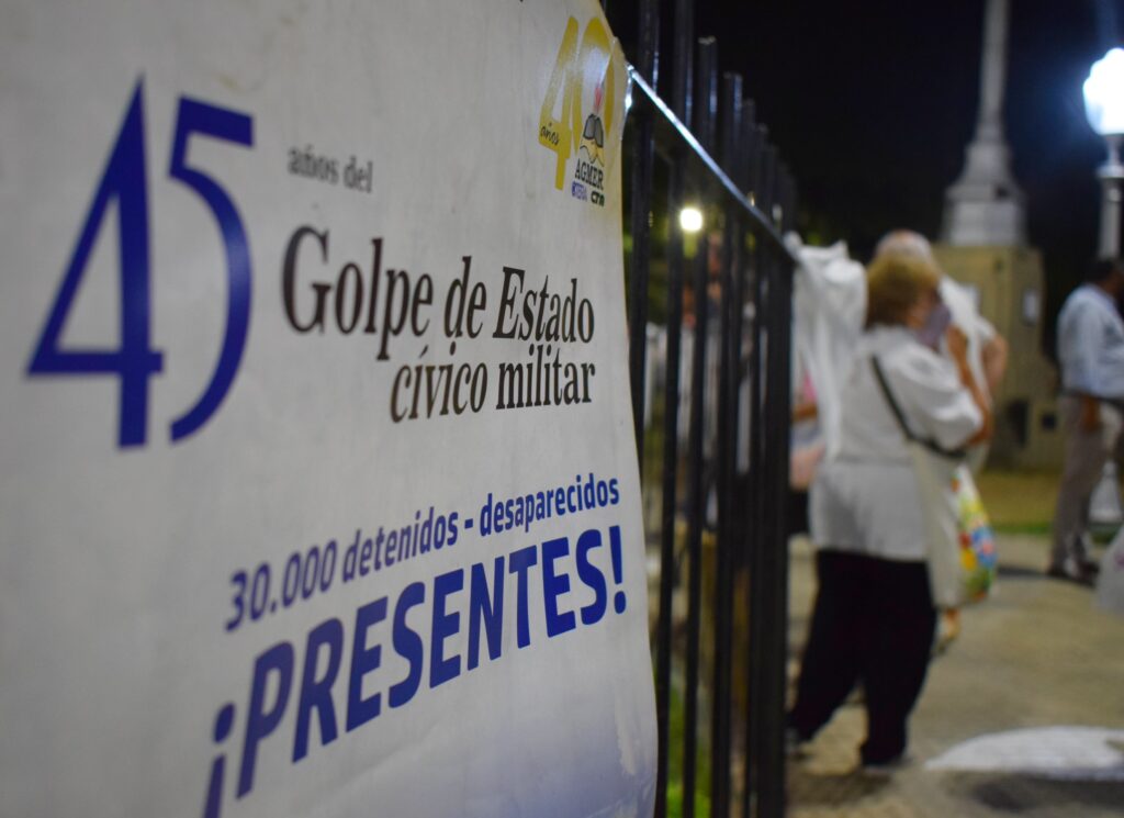 Ayer por la noche, en plaza Urquiza, organizaciones de Derechos Humanos y familiares de víctimas de la Dictadura Militar conmemoraron el Día Nacional por la Memoria la Verdad y la Justicia.