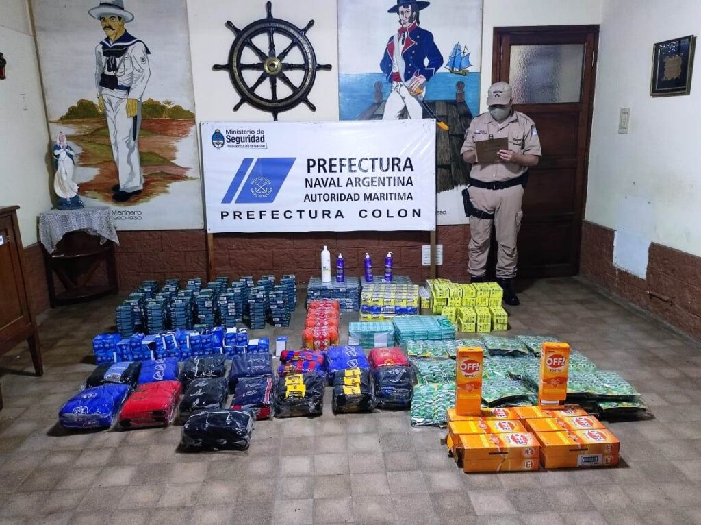 Los efectivos de la Fuerza identificaron a las dos personas que se encontraban en dicha embarcación, y confirmaron que los bultos que transportaban contenían mercadería de exportación ilegal, como indumentaria, productos para el cabello, repelentes para mosquitos y una gran cantidad de comprimidos farmacéuticos.